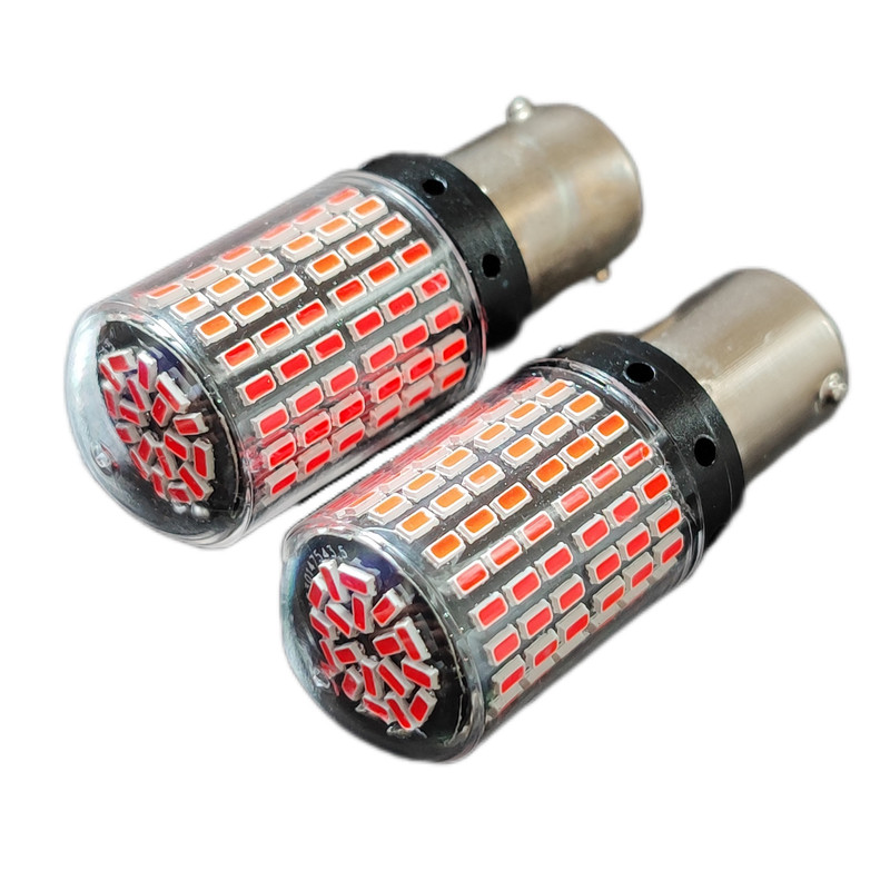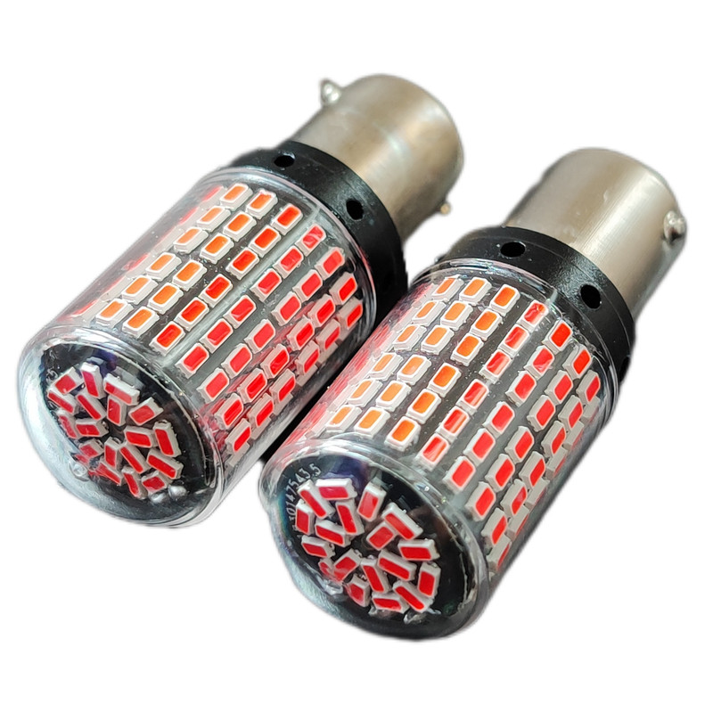 لامپ تک کنتاکت فندقی با 144 SMD با نور خیره کننده و استثنایی ، رنگ قرمز ، قابل استفاده در چراغ خطر و مه شکن و استپ ترمز ، مناسب برای خودرو های داخلی و خارجی ، (همچنین میتوان جهت استفاده به عنوان مزاحم گیر هدلایت در مه شکن خودرو نصب کرد )