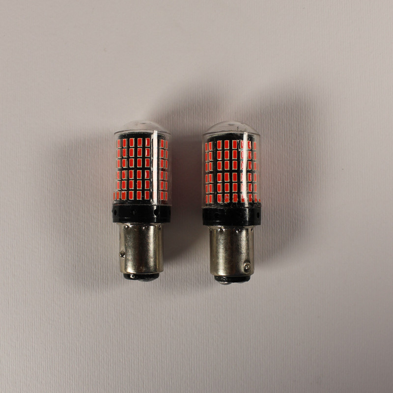 لامپ با پایه فندقی دو کنتاک بسیار پر نور دارای 144 عدد اس ام دی الترا به رنگ قرمز می باشد کنتاک کم نور یا (چراغ کوچک) ساده و کنتاک پرنور یا (چراغ ترمز) چشمک زن میباشد.