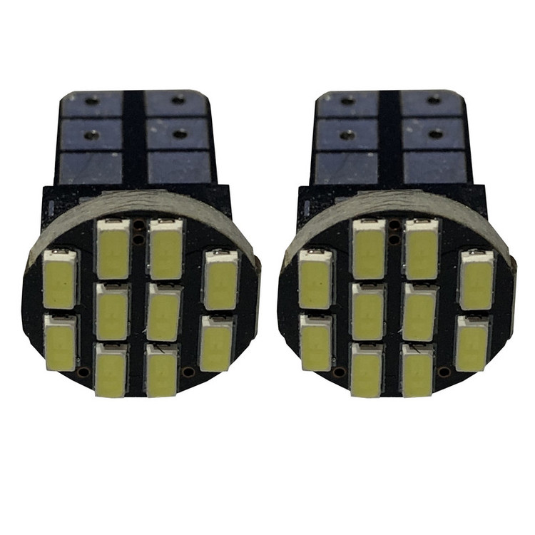 این محصول شامل دو عدد لامپ با 10 عدد SMD است و یک نور بسیار عالی و لیرزی را به شما ارائه دهد . رنگ محصول سفید است . این محصول سایز بسیار عالی و مناسبی دارد و بسیار مناسب استفاده هم برای پلاک خودرو و هم داخل چراغ خودرو به جای لامپ سکن یا لامپ پارک است . رنگ نور محصول سفید است . دامنه ولتاژ محصول 12 ولت است . جهت خرید محصول به مدل پایه این لامپ و پایه لامپ های داخل چراغ پلاک خودرو خود توجه کنید .
